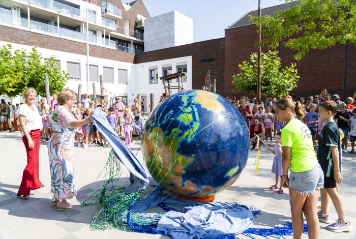 Bij Atlas geloven wij dat de school een weerspiegeling is van onze samenleving. De wereld stond dan ook centraal tijdens de feestelijke openingsdag. In een grote parade liepen alle kinderen achter de wereldwandelaar aan en vertoonden onderweg hun kunsten in dans, beweging, muziek en acrobatiek aan alle ouders en genodigden. Na afloop werd de wereldbol onthuld door wethouder Marleen Treep, als symbolische opening.